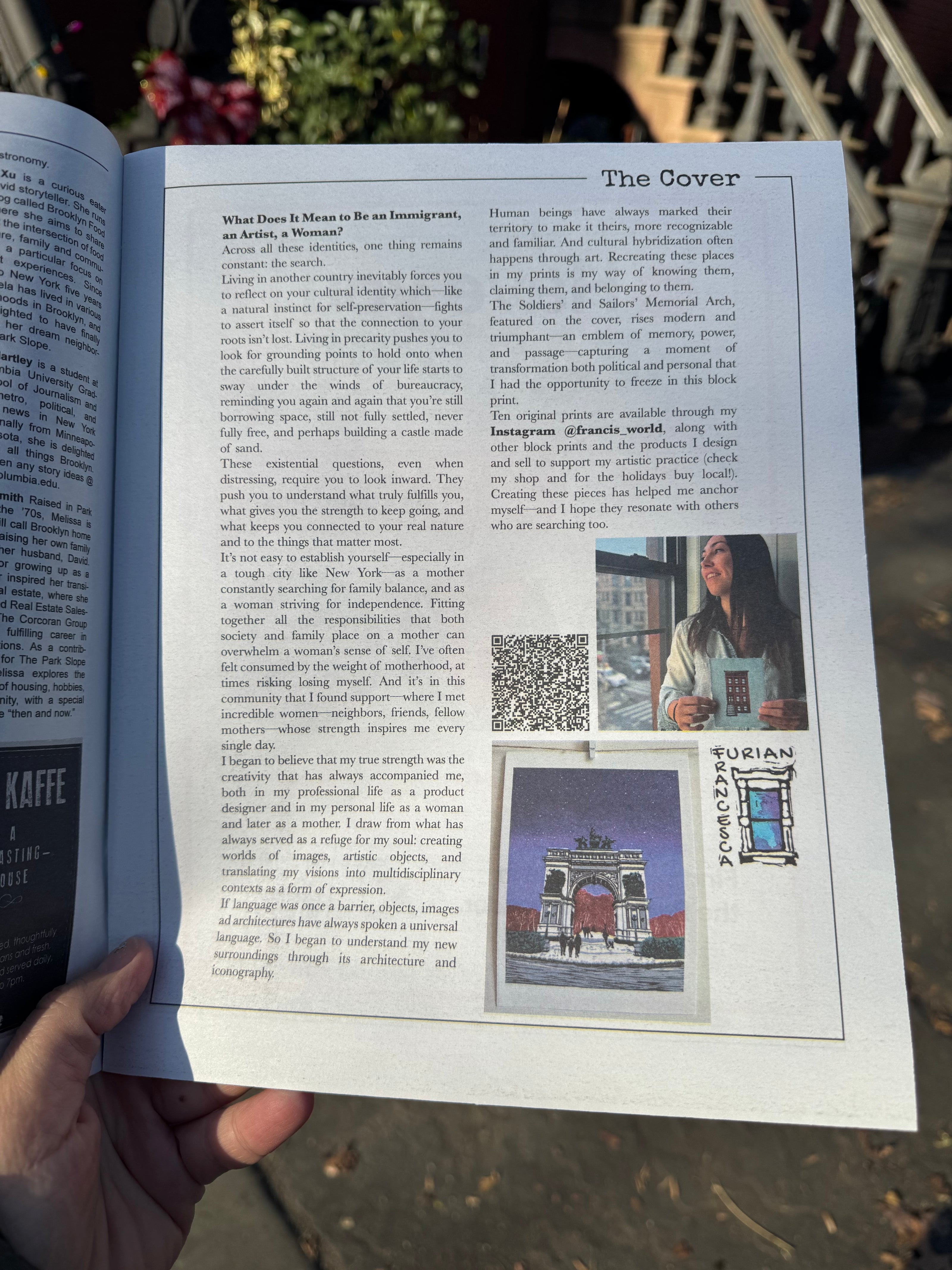 I had the opportunity to express myself both visually, through an exclusive block print created for the publication, and through an article in which I talk—perhaps a bit too seriously!—about my life.
